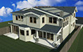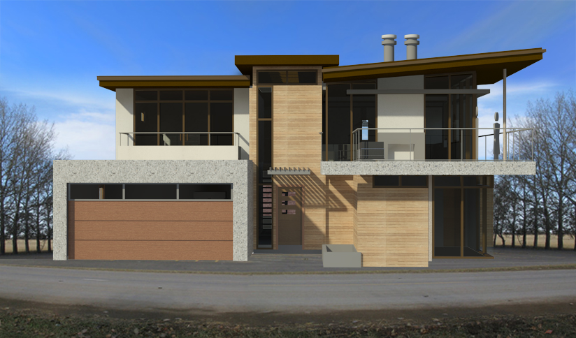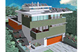 Two-story modern green home with rooftop solar and other low energy design features