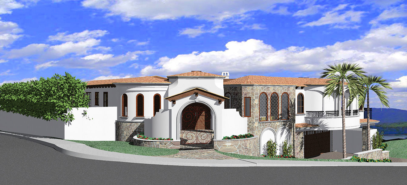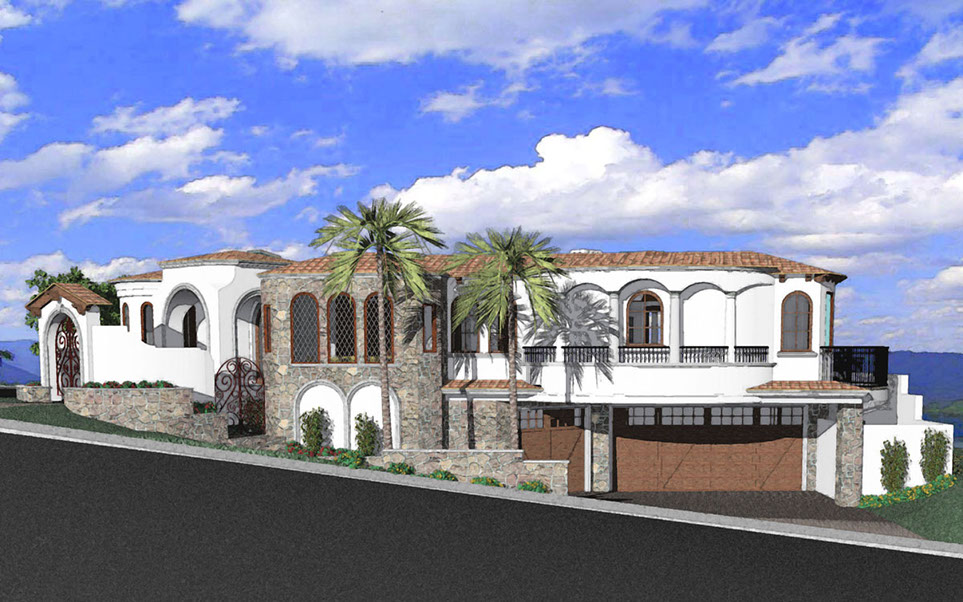 Custom hill-side overlay two-story Santa Barbara style home