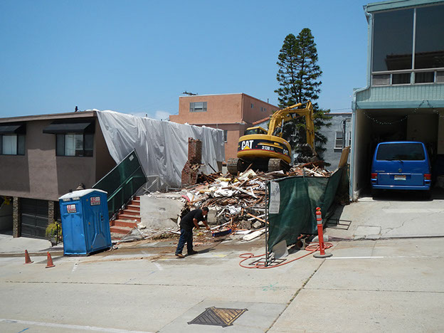 Demo - a large excavator was brought in to remove the existing structure. Temporary fencing was installed along with temporary protection for the adjacent homes. The conditions of the adjacent homes were documented to avoid future false damage claims.